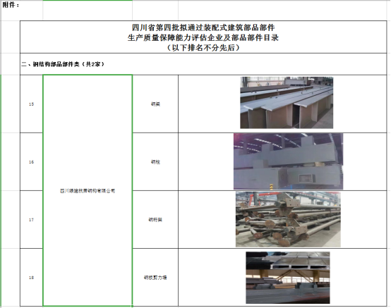 “千錘成利器,百煉變成鋼”,20228月,四川綠建杭蕭鋼構(gòu)有限公司(以下簡稱:綠建杭蕭)順利通過裝配式建筑部品部件生產(chǎn)質(zhì)量保障能力評估,目前正處于四川省住房和城鄉(xiāng)建設(shè)廳官網(wǎng)公示階段。